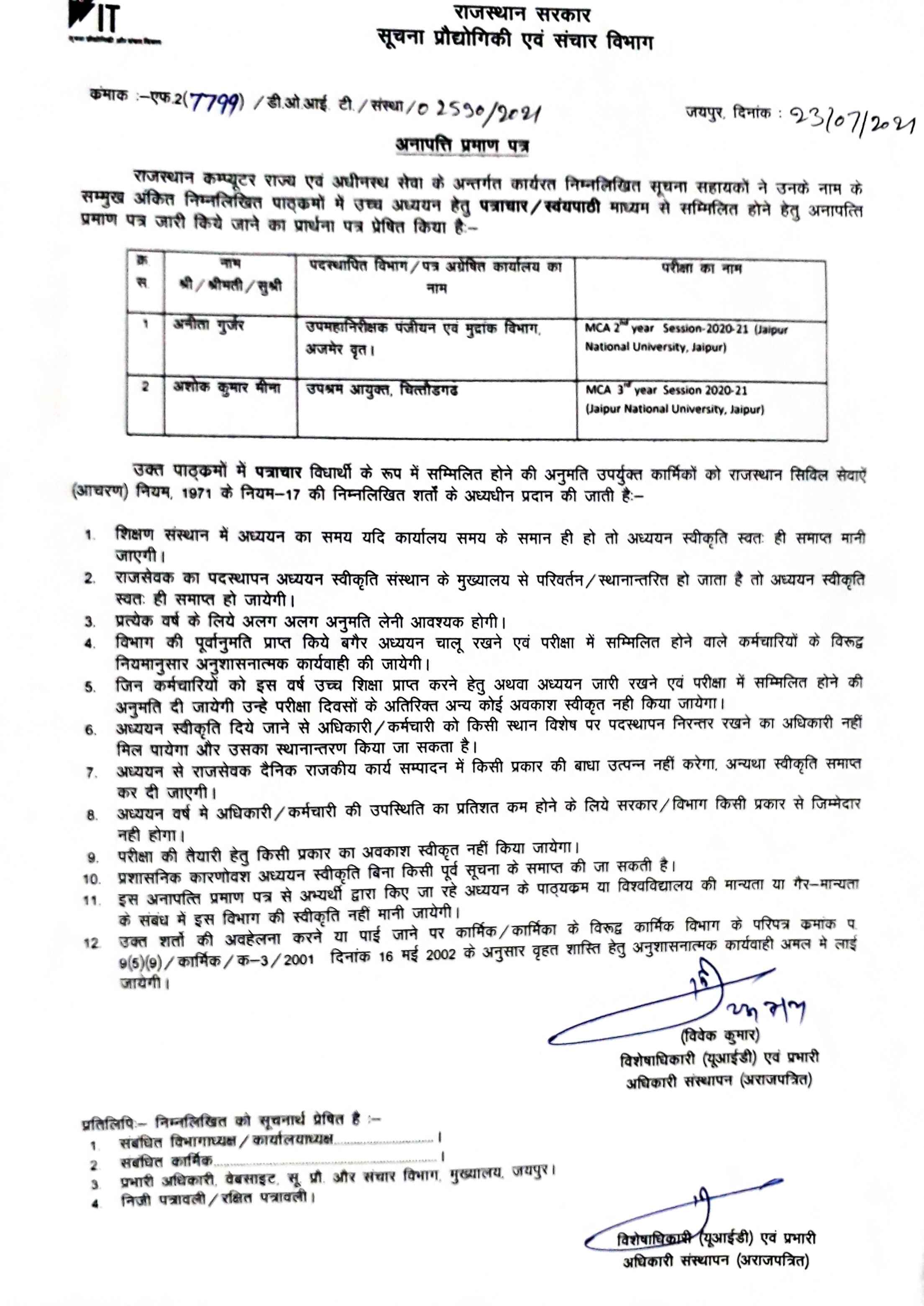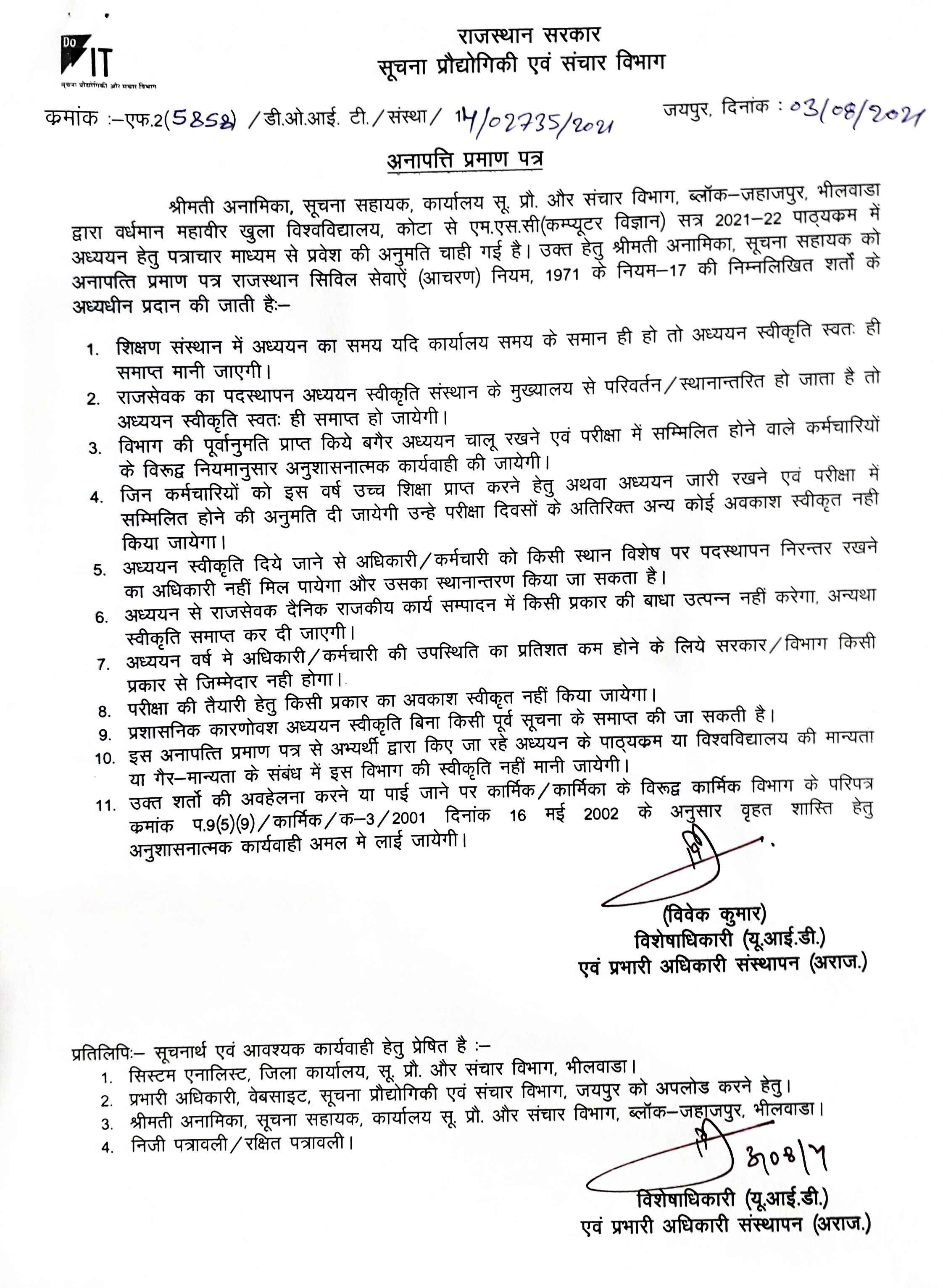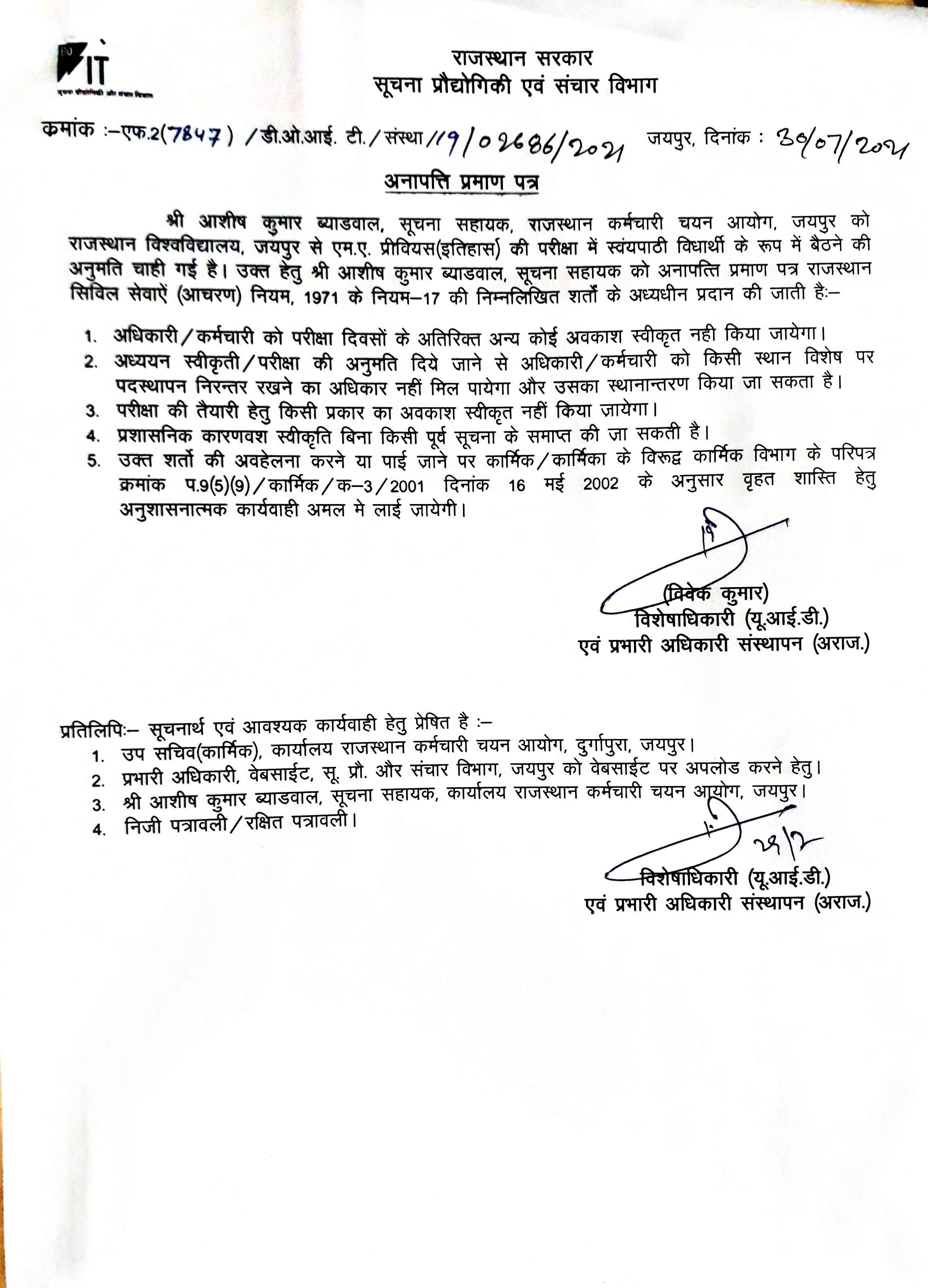 NOC for Further Study (Harish Chandra Patidar, IA)