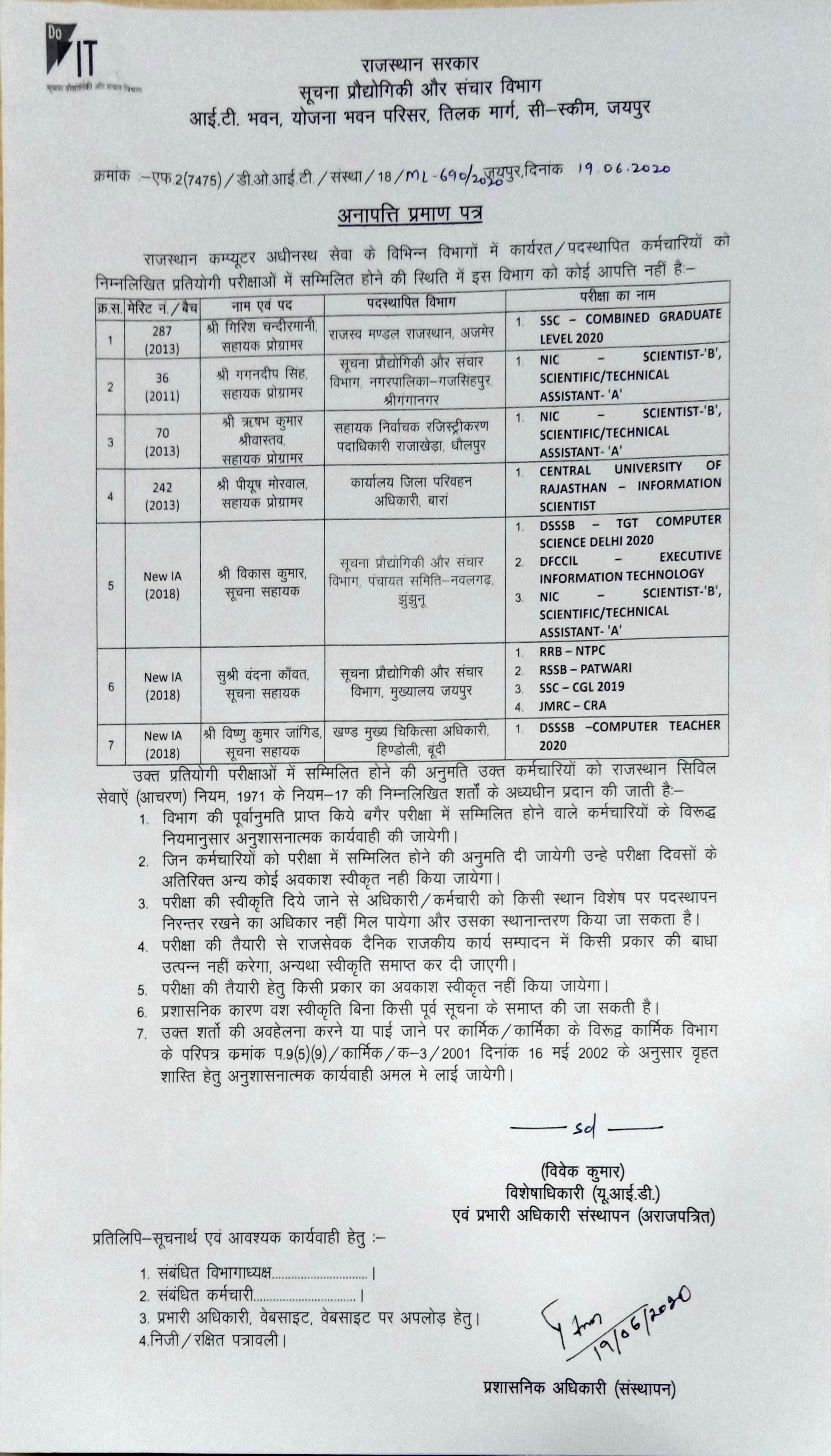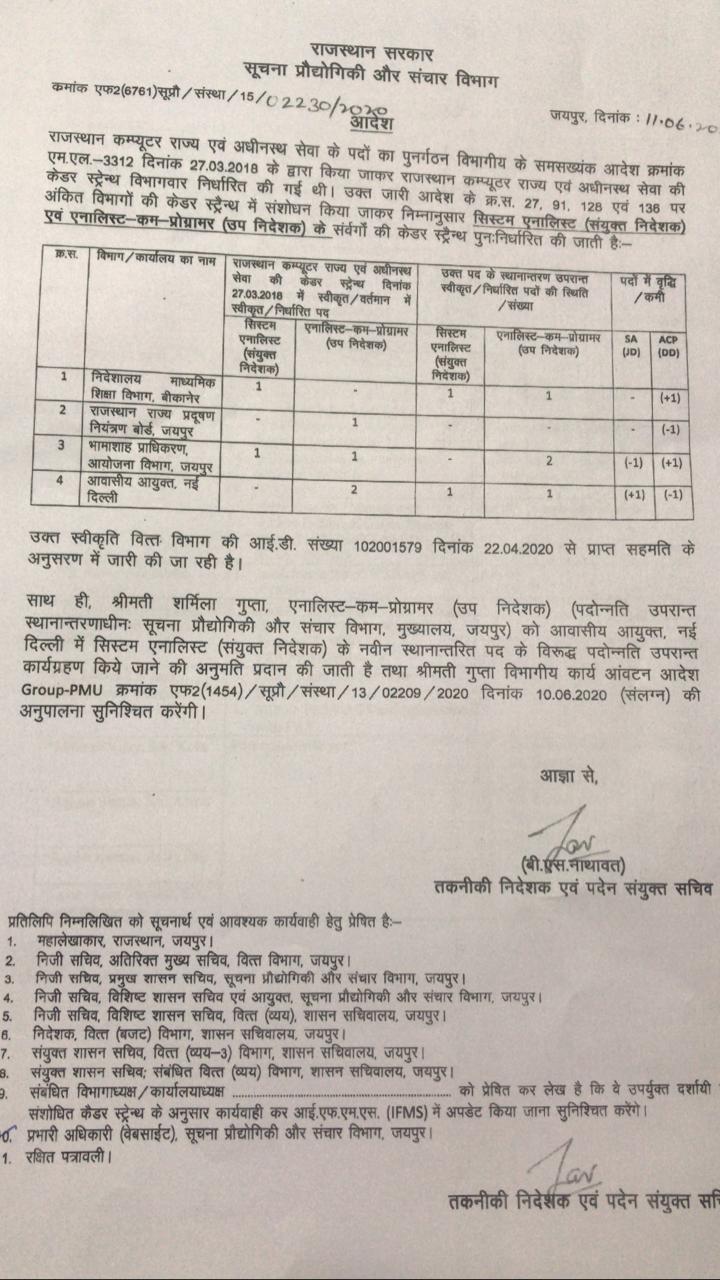 Office order for extension of adhoc promotions of DoIT & C Officers