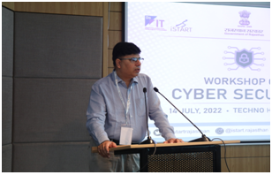 The Workshop on Cyber Security was organized by iStart Rajasthan on 14th July 2022 at Techno hub, Jaipur. This half day event was organized to give audience an overview of the initiative and encourage them towards the cyber security. Workshop covered different concepts on cyber security. Speakers gave different sessions on cyber-crime, game changing technologies in crime investigation and trending cyber threats and securities.